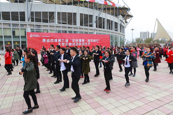 2017年4月8日,康姿百德第六屆“全民健身?快樂(lè)同行”大型公益活動(dòng)啟動(dòng)儀式在秦皇島奧林匹克體育中心隆重舉行,來(lái)自全國(guó)各地近千名康姿百德健身操愛(ài)好者參加了啟動(dòng)儀式??底税俚录瘓F(tuán)銷售一公司銷售經(jīng)理張東旭、銷售二公司銷售經(jīng)理陳瑞揚(yáng)等領(lǐng)導(dǎo)出席了此次啟動(dòng)儀式。