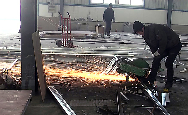 工作人員在切割鋼材