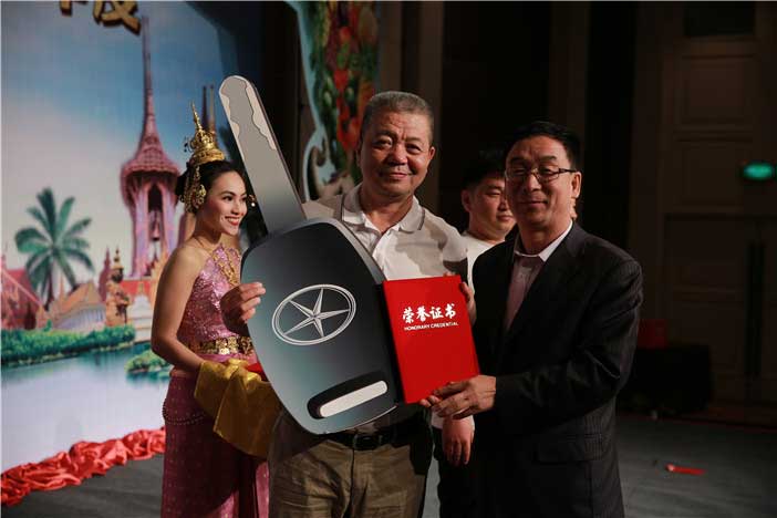李總為榮獲銷售單項(xiàng)獎的經(jīng)銷商頒發(fā)商務(wù)汽車