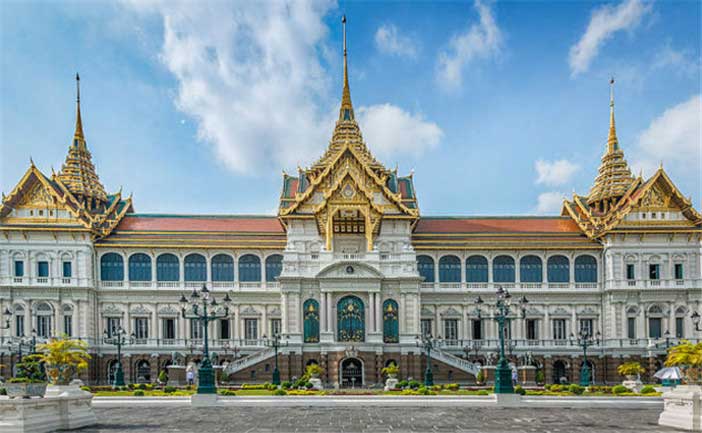 金碧輝煌的大皇宮,是泰國歷代王宮中保存最完美、規(guī)模最大,最有民族特色的王宮。