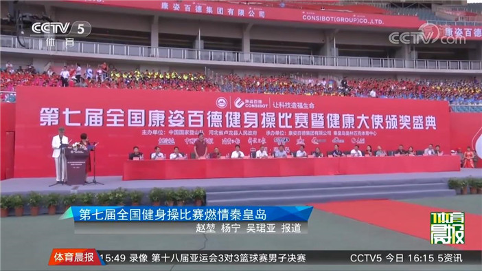 2018年,CCTV-5體育頻道報道康姿百德第七屆“全民健身 快樂同行”健身公益活動。