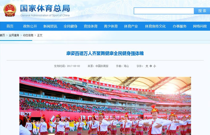 安徽體育局登載康姿百德健身操展演活動(dòng)信息