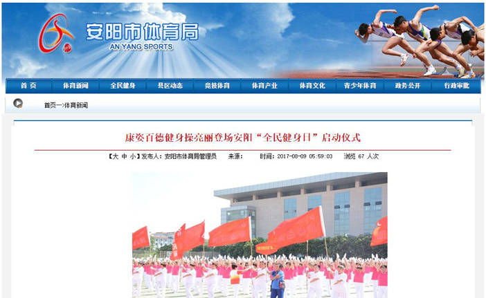 河南安陽(yáng)體育局登載康姿百德健身操展演活動(dòng)信息