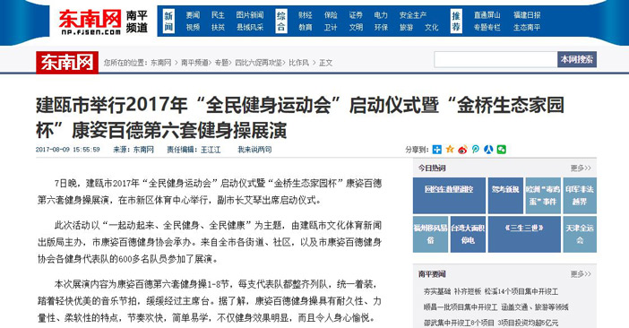 東南網(wǎng)報(bào)道康姿百德健身操展演活動(dòng)