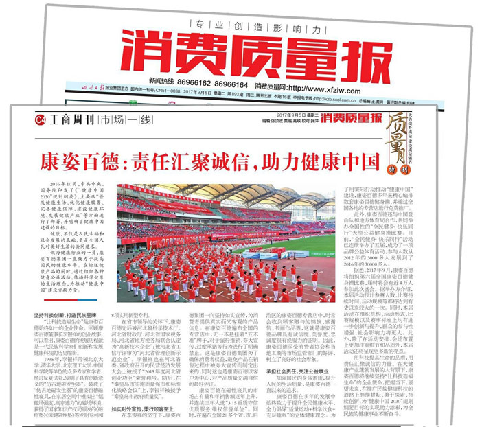 《消費(fèi)質(zhì)量報(bào)》報(bào)道康姿百德:責(zé)任匯聚誠信,助力健康中國