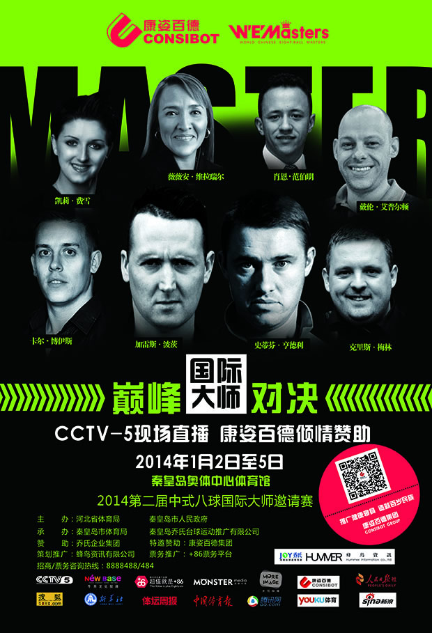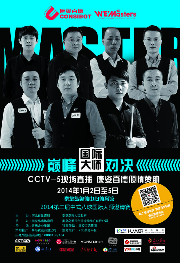 由河北省體育局、秦皇島市人民政府主辦,我公司傾情贊助的中國(guó)·秦皇島“喬氏杯”第二屆中式八球國(guó)際大師邀請(qǐng)賽,將于2014年1月2日至5日在秦皇島奧體中心舉行。屆時(shí),“臺(tái)球皇帝”亨德利等8名國(guó)際臺(tái)球大師將與8名國(guó)內(nèi)中式八球頂尖高手進(jìn)行“中外對(duì)抗”,為觀眾帶來一次盛會(huì)。