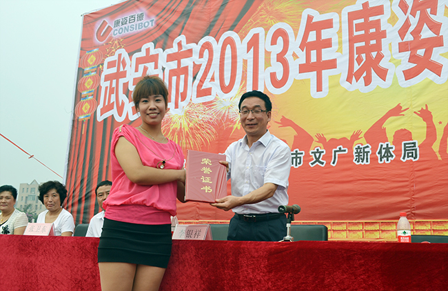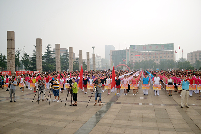 8月2日上午,邯鄲武安市武安廣場五彩斑斕、人聲鼎沸。隨著熟悉的節(jié)拍,一支支代表隊舞動著優(yōu)美的舞姿,精神飽滿,動作整齊,數(shù)千人徜徉在一片舞的海洋之中,盡情享受康姿百德健身操帶給人們的健康和快樂。 為迎接第五個“全民健身日”的到來,引導廣大群眾積極參加體育健身活動,武安市文廣新體局、康姿百德邯鄲分公司聯(lián)合在武安廣場舉行了康姿百德第二套健身操比賽。來自武安市各健身站點的24支代表隊共計658人參加了比賽,整個比賽精彩紛呈,高潮迭起,產生了良好的社會反響。康姿百德公司董事長、總經理李銀祥在百忙之中出席比賽并致辭。 李銀祥在致辭中首先對武安市各級領導、社會各界給予康姿百德公司的支持和康姿百德健身操的厚愛表示感謝!李銀祥說,康姿百德公司是一家研發(fā)生產磁性健康寢具的高科技企業(yè),公司在高度重視產品質量的同時,積極倡導“健康睡眠、適量運動、合理營養(yǎng)”三管齊下的“立體健康”理念,研究創(chuàng)編了康姿百德健身操,并通過不斷地完善改進,于今年3月份推出了康姿百德第二套健身操,受到了全國各地廣大健身愛好者的喜愛。目前,康姿百德健身操在全國已有4000多個健身場所、參與人數(shù)300多萬,并被許多機關單位和中小學、幼兒園作為工(課)間操,這既是對我們的激勵,也是對我們的鞭策。我們將繼續(xù)把康姿百德的各項工作做得更扎實、更出色。