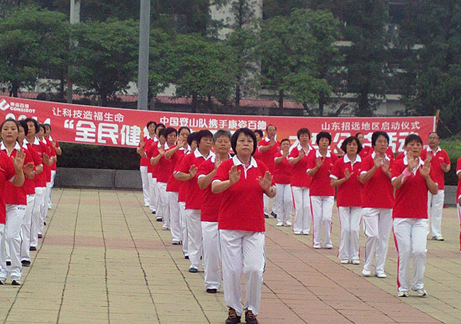 8月8日,山東招遠(yuǎn)的700多名康姿百德健身操愛好者和當(dāng)?shù)厥忻瘢谑姓畯V場(chǎng)載歌載舞,喜迎“全民健身日”,向人們倡導(dǎo)康姿百德公司提出的“健康睡眠+適量運(yùn)動(dòng)+合理飲食”的立體健康理念,傳遞著健康向上的正能量。 當(dāng)天上午8:30分,由當(dāng)?shù)乜底税俚聭敉饨∩頎I(yíng)組織舉辦的2014“全民健身 快樂同行”大型公益活動(dòng)招遠(yuǎn)地區(qū)啟動(dòng)儀式在這里隆重舉行,招遠(yuǎn)經(jīng)銷商向廣大市民宣布了本次活動(dòng)的目的和意義,當(dāng)?shù)乜底税俚陆∩頎I(yíng)隊(duì)員進(jìn)行了健身操表演,贏得了在場(chǎng)觀眾的普遍贊賞。大家一致認(rèn)為,康姿百德健身操節(jié)拍有力,動(dòng)作到位,音樂優(yōu)美,具有適宜人群廣泛、簡(jiǎn)單易學(xué)的特點(diǎn),是市民健身鍛煉的好項(xiàng)目,今后要加入到這個(gè)健身隊(duì)伍中,為推廣全民健身貢獻(xiàn)力量。 本次活動(dòng)得到了當(dāng)?shù)赜嘘P(guān)部門和媒體的重視,招遠(yuǎn)市老體協(xié)等單位領(lǐng)導(dǎo)出席了啟動(dòng)儀式,招遠(yuǎn)新聞對(duì)本次活動(dòng)進(jìn)行了報(bào)道。