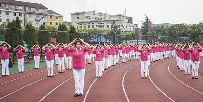 8月8日,在浙江諸暨各界迎接“全民健身日”活動中,當?shù)乜底税俚陆?jīng)銷商在諸暨體育場啟動了中國登山隊攜手康姿百德2014“全民健身 快樂同行”大型公益活動,當?shù)亟∩韾酆谜?00多人參加啟動儀式并進行了健身操表演。諸暨電視臺《諸暨新聞》報道了活動開展情況。