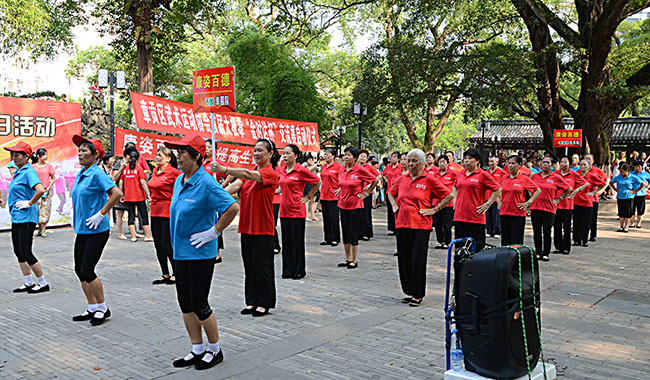 2014年 8月3日,為迎接第5個(gè)“全民健身日”的到來和第14屆江西省省運(yùn)會在贛州市舉行,贛州市章貢區(qū)體育局聯(lián)合贛州康姿百德戶外健身營共同舉辦了“迎省運(yùn)全民健身日”活動(dòng)。 由贛州康姿百德戶外健身營160多名成員組成的七個(gè)健身操表演方隊(duì)和一個(gè)康姿百德女子舞蹈隊(duì),在健身操、舞蹈、武術(shù)、太極拳等展演中最為引人注目,對宣傳立體健康、助推全民健身、提高康姿百德的社會影響力起到了積極作用。 江西七臺、贛州電視臺等新聞媒體,對本次活動(dòng)進(jìn)行了現(xiàn)場采訪,其活動(dòng)新聞將于近期在上述各臺新聞節(jié)目中播出。