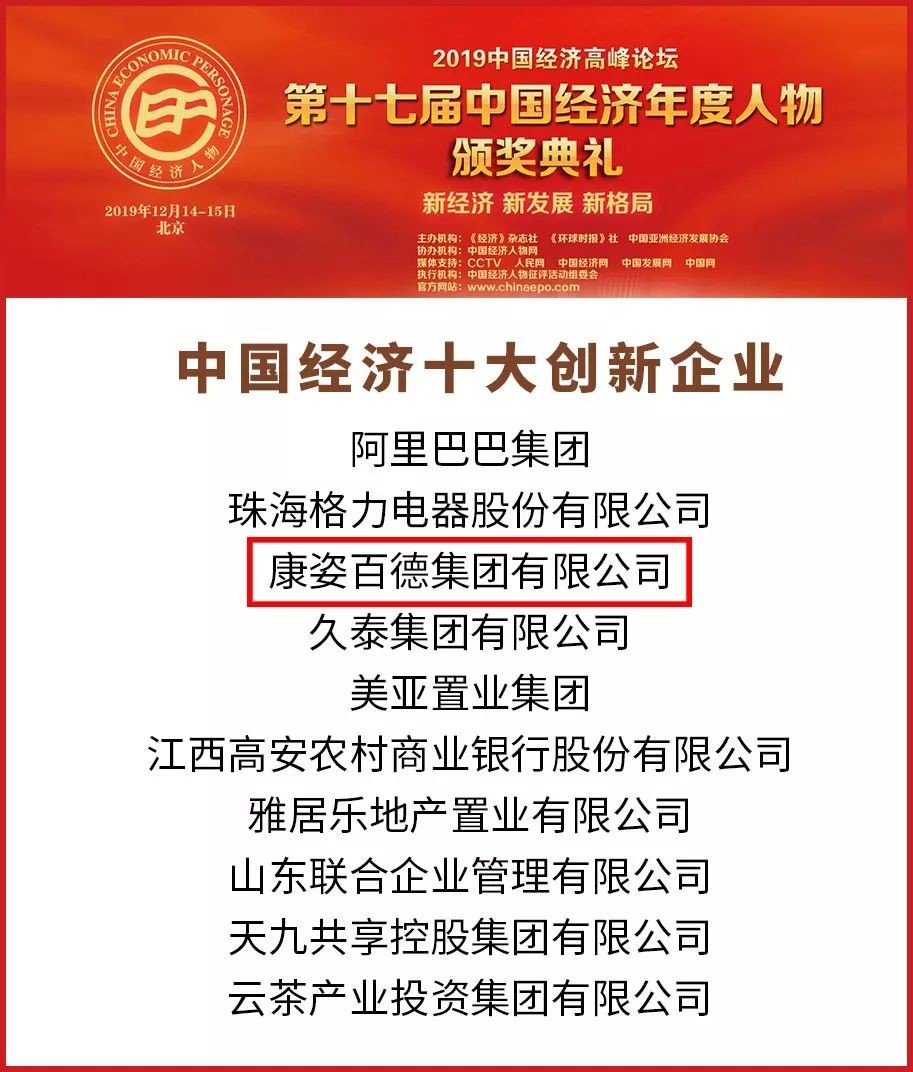 2019年12月15日,以“新經(jīng)濟(jì)、新發(fā)展、新格局”為主題,由《經(jīng)濟(jì)》雜志社、《環(huán)球時報》社、中國亞洲經(jīng)濟(jì)發(fā)展協(xié)會聯(lián)合舉辦的“2019中國經(jīng)濟(jì)高峰論壇暨第十七屆中國經(jīng)濟(jì)人物年會” 在京隆重舉行。康姿百德集團(tuán)榮獲“中國經(jīng)濟(jì)十大創(chuàng)新企業(yè)”榮譽(yù)稱號。