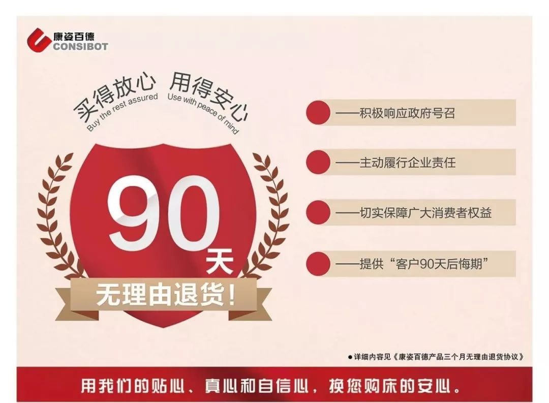 1.三個月無理由退貨,讓康姿百德的產(chǎn)品質(zhì)量和服務(wù)質(zhì)量,得到了進(jìn)一步的提高。