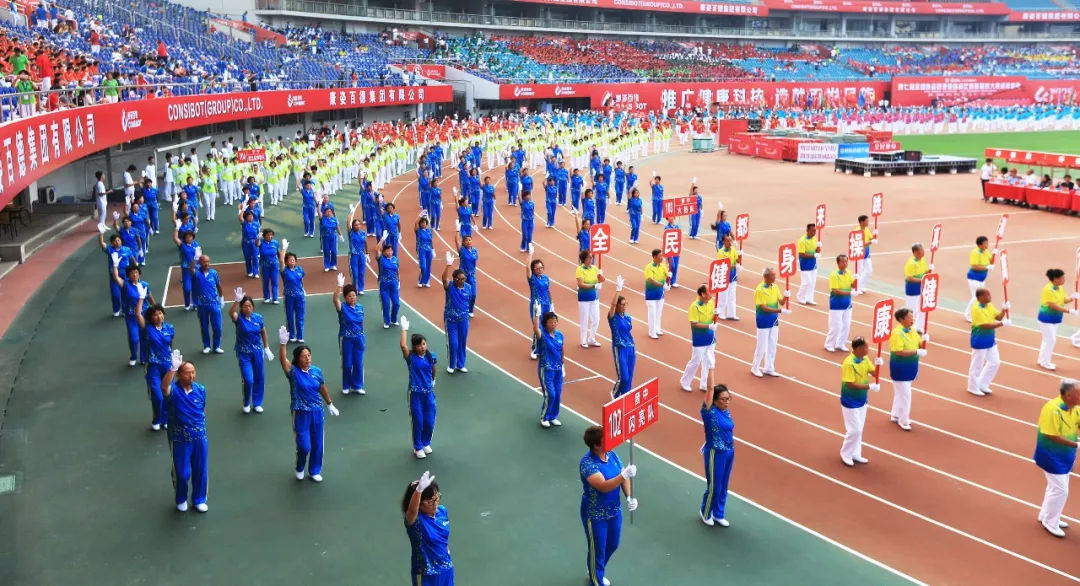 今天,共有近萬名健身愛好者參賽。大家各個精神抖擻,踏著康姿百德健身操音樂節(jié)拍,整齊劃一地舞動起來,將快樂綻放,把健康傳遞!