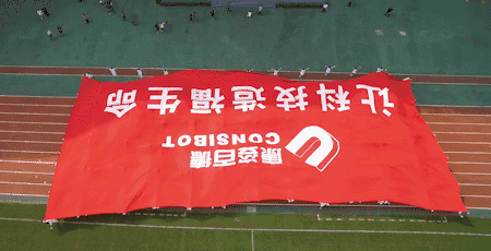 活動伊始,伴隨著慷慨激昂的《走向復(fù)興》音樂,一幅608平方米的巨型“讓科技造福生命”紅旗步入賽場??底税俚鹿ぷ魅藛T高舉旗幟,整齊自如地緩緩前行,給人以極大的視覺沖擊。