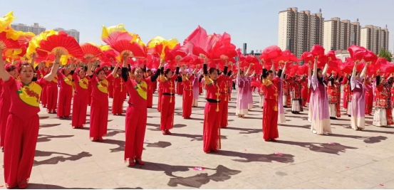 歌舞展演活動(dòng)在集體舞《母親是中華》中拉開序幕,昂揚(yáng)的旋律與優(yōu)美的舞姿交織成一幅動(dòng)人的畫面,為觀眾帶來了一場(chǎng)震撼心靈的視聽盛宴。之后,廣場(chǎng)舞、扇子舞、民族舞蹈等節(jié)目輪番上陣、異彩紛呈。參演者們身著艷麗的服裝,各個(gè)精神飽滿,隨著動(dòng)感的音樂,踏著輕快的節(jié)拍,動(dòng)作標(biāo)準(zhǔn)優(yōu)美,隊(duì)列整齊有序,彰顯了健康活力,傳遞著運(yùn)動(dòng)的魅力。
