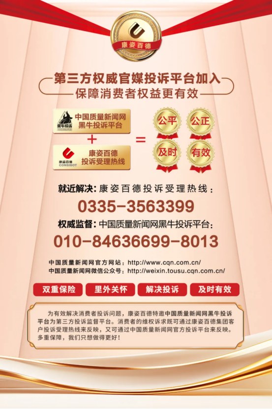 為了進一步提升專賣店的服務(wù)水平,更好地維護消費者的合法權(quán)益,康姿百德開通企業(yè)投訴受理熱線,加入了中國消費者協(xié)會“智慧315”消費維權(quán)投訴平臺,還特邀“中國質(zhì)量新聞網(wǎng)黑牛投訴平臺”作為第三方投訴監(jiān)督平臺。并且,統(tǒng)一制作監(jiān)督舉報公示牌張貼在全國所有門店,主動接受消費者的監(jiān)督。多重途徑保障消費者的合法權(quán)益,真正做到投訴有渠道,事事有回音,件件有著落,讓廣大消費者購買無憂。