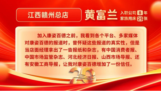 康姿百德20周年專賣店員工的系列故事會(huì)持續(xù)推出,讓我們一起期待其他地區(qū)專賣店員工代表的精彩故事吧!