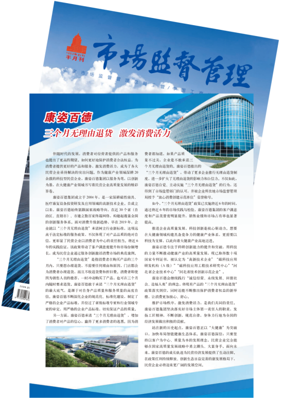 《市場監(jiān)督管理》半月刊以《康姿百德:三個(gè)月無理由退貨 激發(fā)消費(fèi)活力》為題,全面、詳細(xì)地報(bào)道了康姿百德。
