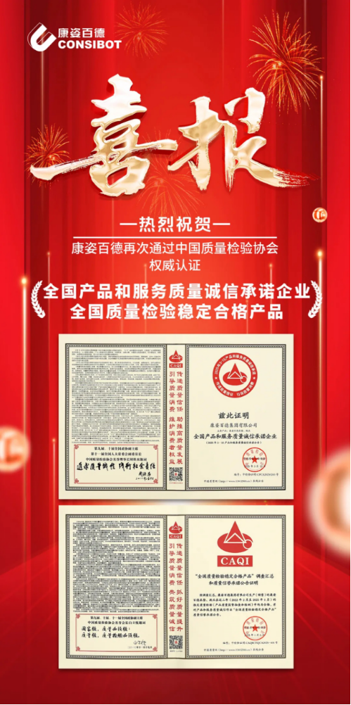 2025年315國際消費者權益日期間,康姿百德憑借過硬的質(zhì)量管理能力和對產(chǎn)品質(zhì)量的高度重視,再次榮獲由中國質(zhì)量檢驗協(xié)會頒發(fā)的“全國產(chǎn)品和服務質(zhì)量誠信承諾企業(yè)”、“全國質(zhì)量檢驗穩(wěn)定合格產(chǎn)品”兩項權威認證。