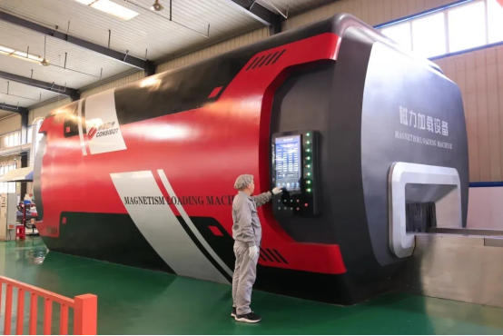 磁力加載設(shè)備是磁性寢具自動化生產(chǎn)線的重要組成部分,是由康姿百德集團(tuán)自主研發(fā)、設(shè)計的??底税俚麓帕虞d設(shè)備全長15米,寬5米,高4米。設(shè)備外觀采用工業(yè)美學(xué)設(shè)計,融入現(xiàn)代化工藝及設(shè)計元素,展現(xiàn)了康姿百德集團(tuán)科技、智能、高端的品牌形象。