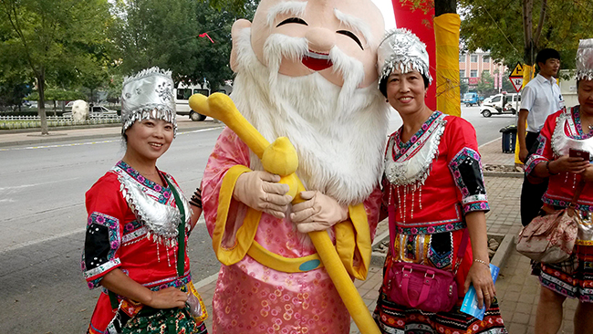 “和壽星合影就會(huì)健康長(zhǎng)壽哦~”——顧客與壽星卡通精靈親密合照